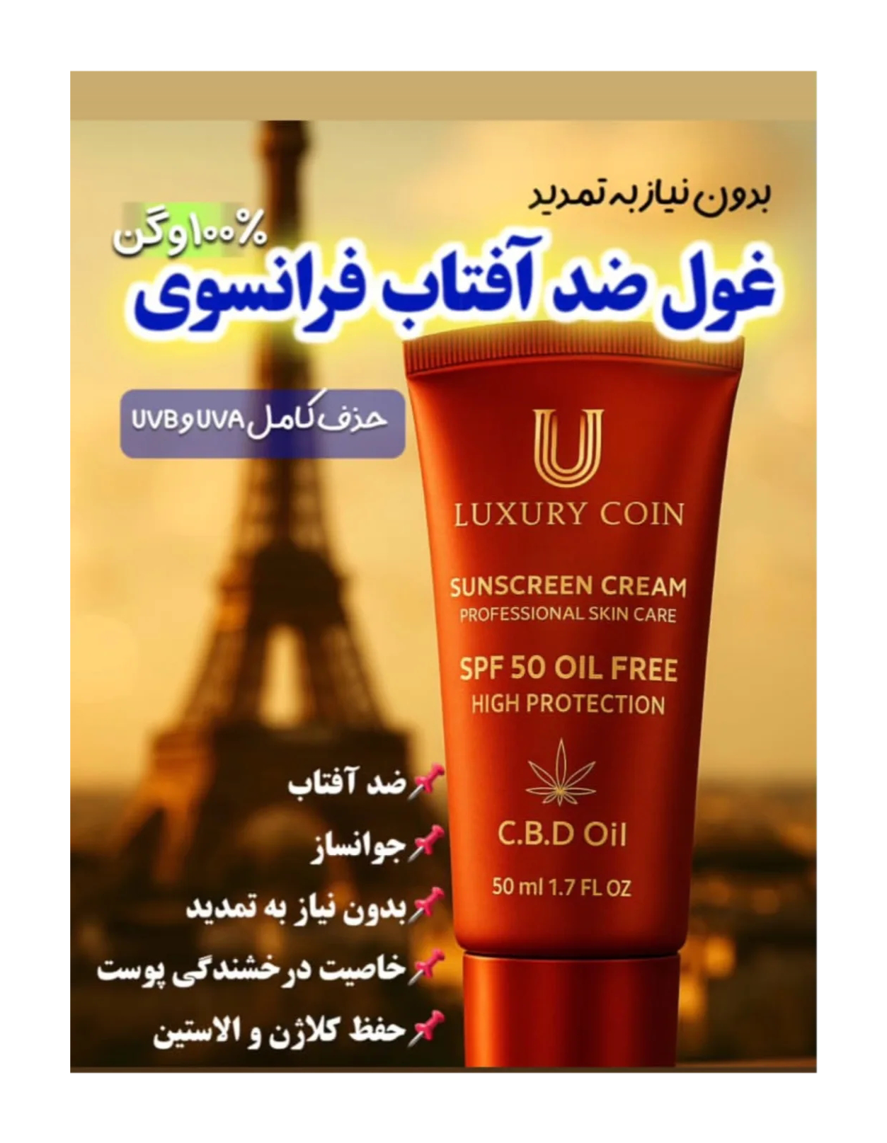 ضد آفتاب ۸ ساعته بدون نیاز به تمدید،نرم کننده با خاصیت جوانسازی 💯